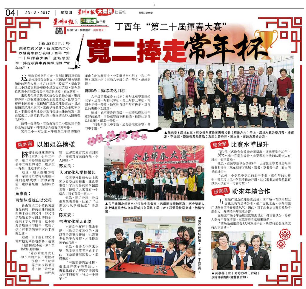 全柔挥春大赛揭晓-新山宽二夺常年杯