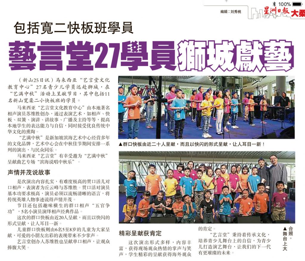 包括宽二快板班学员-艺言堂27学员狮城献艺