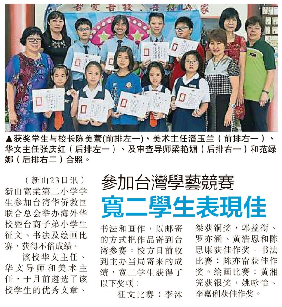 参加台湾学艺竞赛-宽二学生表现佳