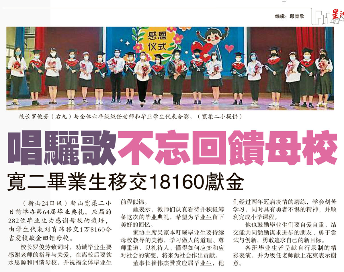 唱骊歌不忘回馈母校-宽二毕业生移交18160献金