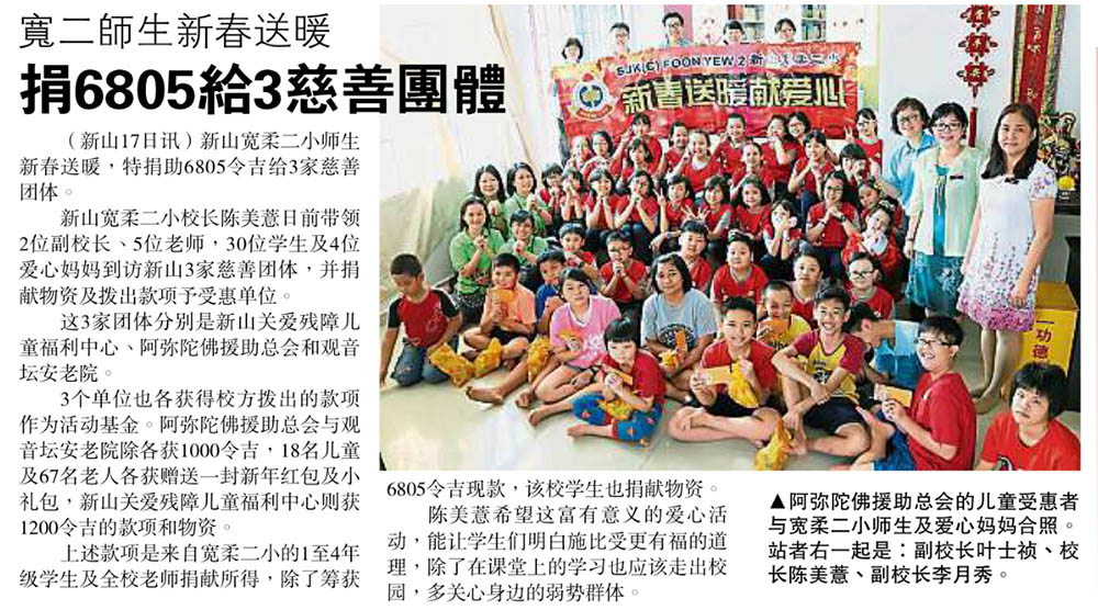 宽二师生新春送暖-捐6805给3慈善团体