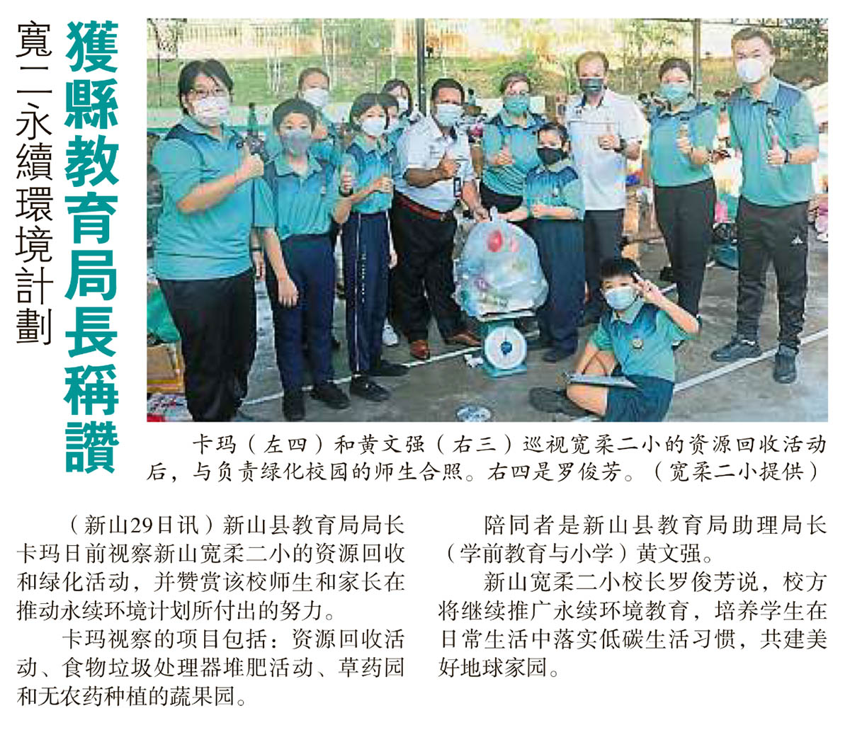 宽二永续环境计划-获县教育局长称赞