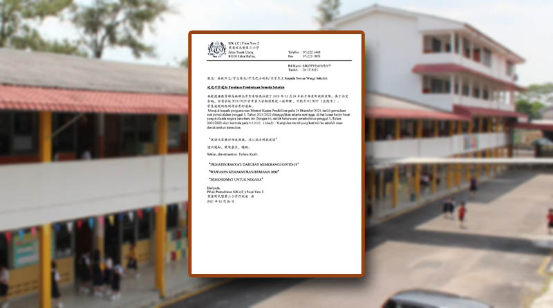 Merujuk kepada pengumuman Menteri Kanan Pendidikan pada 24 Disember 2021, tarikh permulaan sesi persekolahan penggal 3, Tahun 2021/2022 ditangguhkan selama seminggu akibat kesan banjir besar yang melanda negara baru-baru ini. Dengan ini, tarikh baharu sesi persekolahan penggal 3, Tahun 2021/2022 akan bermula pada 9.1.2022 (Ahad). Kumpulan murid yang kembali ke sekolah akan dimaklumkan kemudian.