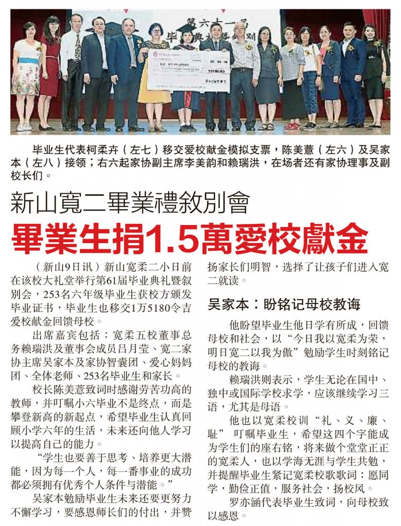其他活动 新闻 活动 通告与新闻 新山宽二毕业礼叙别会-毕业生捐1万5180爱校基金 December 10, 2018December 10, 2018 AdminTeam 4643 Views 星洲日报剪报