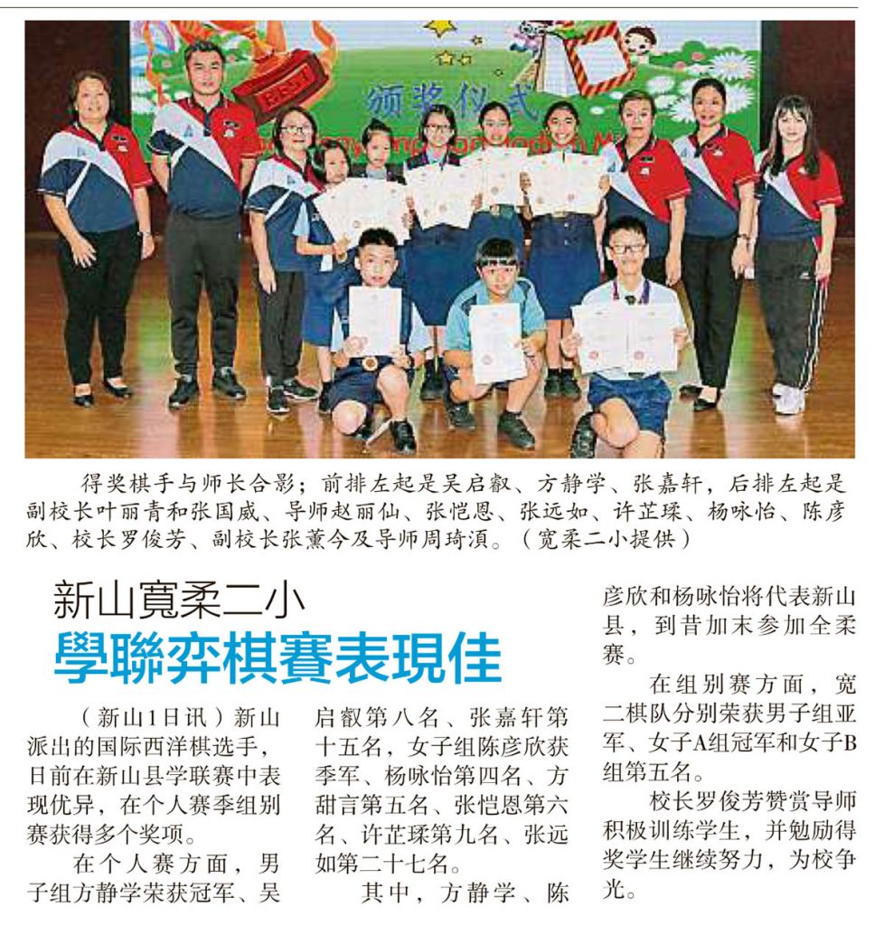 新山乒乓学联赛-宽二龚莉雅获女单亚军