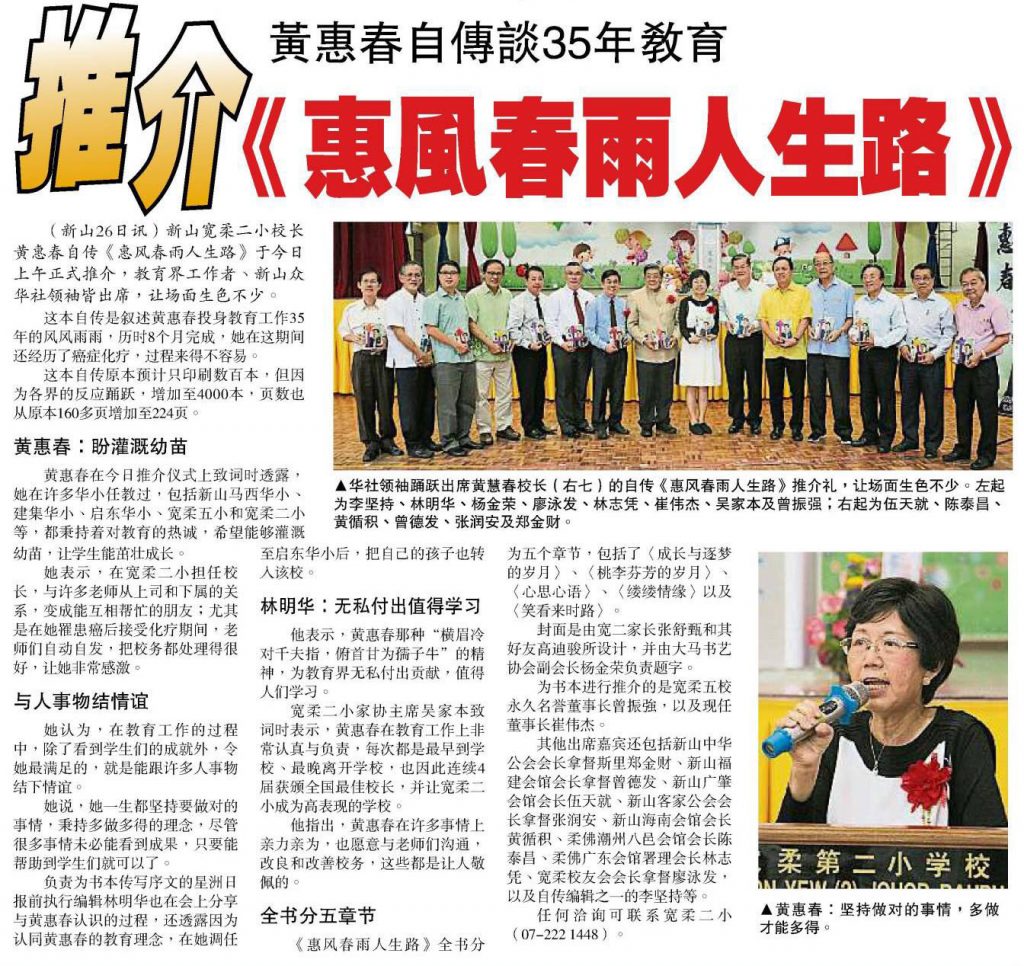新闻 通告与新闻 黄惠春校长自传谈35年教育-推介《惠风春雨人生路》 February 27, 2017March 1, 2017 AdminTeam 4486 Views 黄惠春校长《惠风春雨人生路》推介礼图片集