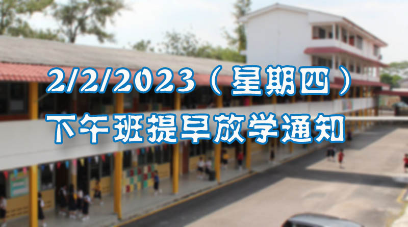 详情 >>2/2/2023(星期四)除了本校参与恳亲文娱晚会表演的学生,其他的学生将会在4.30p.m.放学。