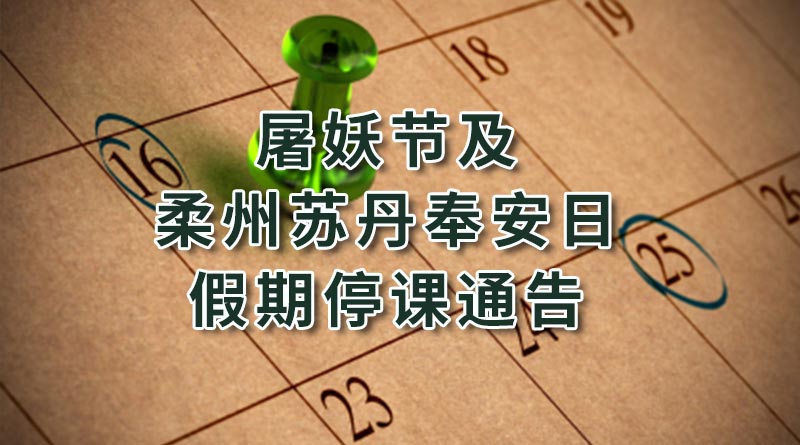 详情 >>屠妖节/柔州苏丹奉安日假期停课通告。