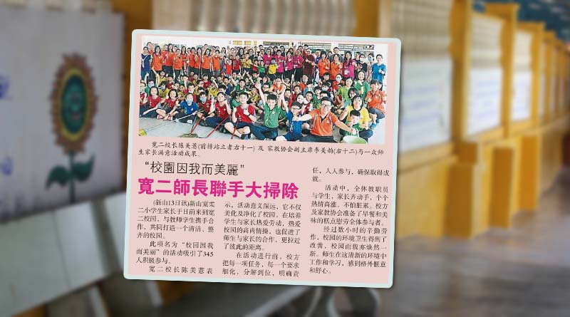 “校园因我而美丽”-宽二师长联手大扫除剪报。